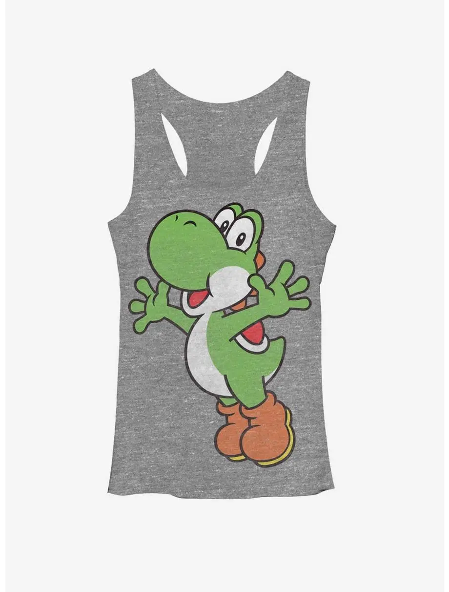 As one of Mario’s best (and cutest) friends, it’s no wonder people are head over heels for Yoshi! Wear this cute green dino close to your heart with the Nintendo Yoshi Heather Gray Racerback Tank Top. Yoshi is printed as his usual happy self across the front. 50% Polyester, 25% Cotton, 25% Rayon.
